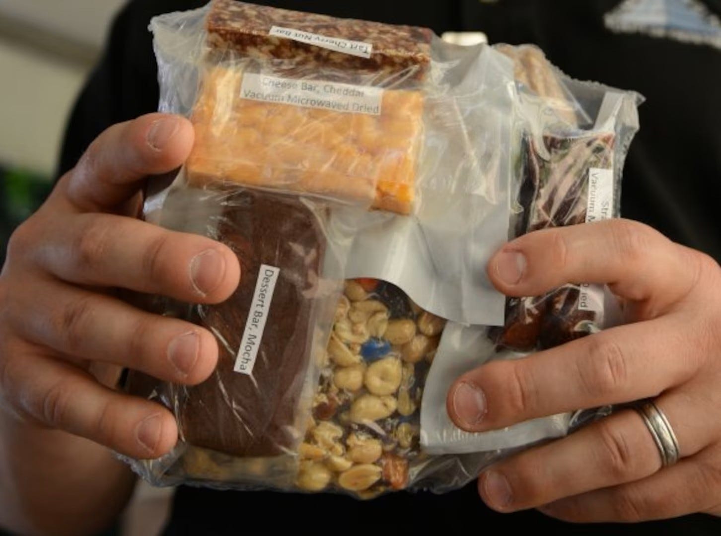 “Got any cheddar beef?” Hudson craned his neck to catalog DeWiess’s hoard of rations.
