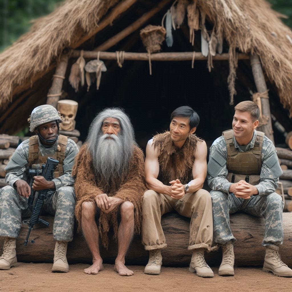 “Remember those old World War II tanks we saw on the march here? Vinzi says, after the crews ran out of fuel, the tribe took them in. The Germans tried to take the place over. Which lasted until about five minutes after the ammunition for their side arms ran out. Then the people of Bedrock mobbed and beat them to death. That were the last ones to show up before us. Well, before me.”