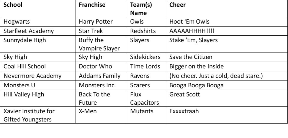 Teams and Cheers At Your Favorite Fantasy and Science Fiction Schools
