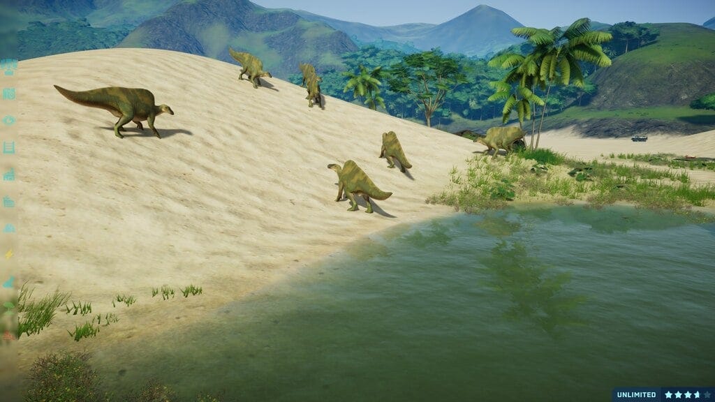It was a somber trek this morning. The rude awakening via hungry velociraptors, and the discovery of a missing, no doubt treacherous, Bunzo cast a pall over the group. Each seemed wrapped in a fog of uncertainty. The hot, morning sun in their faces didn’t help.